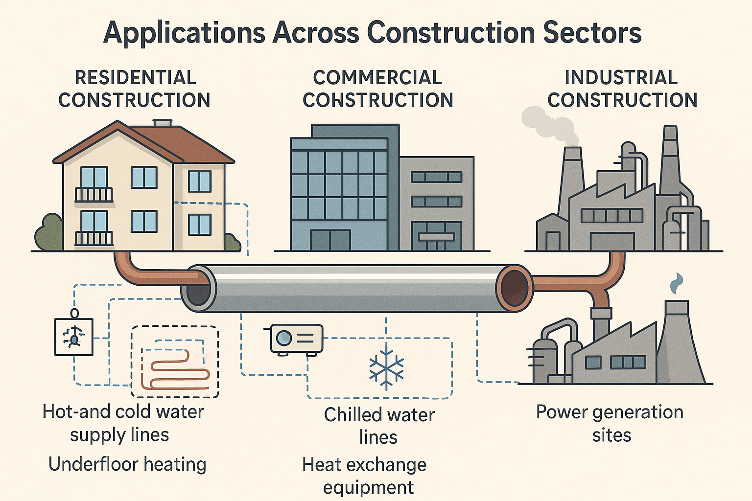 Die Vielseitigkeit von Silber copper tubes Dadurch sind sie für eine Vielzahl von Anwendungen geeignet Bauanwendungen . In Wohnungsbau , sie werden häufig verwendet in Warm- und Kaltwasserversorgungsleitungen , Heizsysteme , und Fußbodenheizungsnetze . Ihre Haltbarkeit trägt dazu bei, das Risiko von Lecks und korrosionsbedingten Ausfällen zu verringern, was besonders wichtig ist Wohngebäude mit mehreren Wohneinheiten .