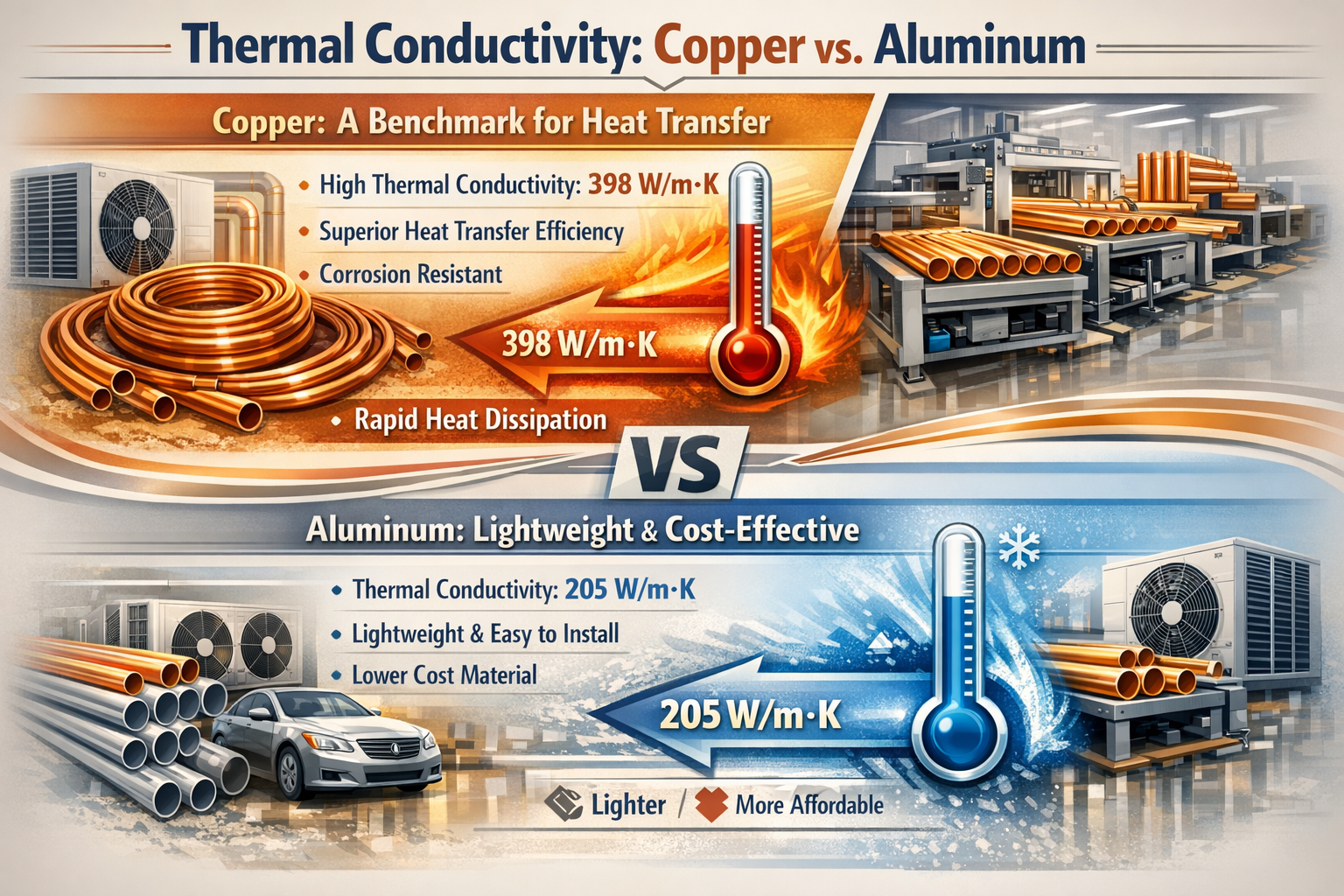 In der Welt der Wärmetauscher, Klimaanlagen, Kühlgeräte und underen Wärmemanagementanwendungen istt die Wahl der Materialien für die Rohre, die die Wärmeübertragung erleichtern, von entscheidender Bedeutung. Kupfer und Aluminium sind zwei der am häufigsten verwendeten Metalle in diesen Systemen, insbesondere wenn es um Rippen und Rohre geht, die die Effizienz des Wärmeaustauschs verbessern. Wenn es um die Leistung geht, stellt sich jedoch die Frage: Wals ist besser für die Wärmeübertragung? Flossenkupferrohre oder Aluminiumrohre ?