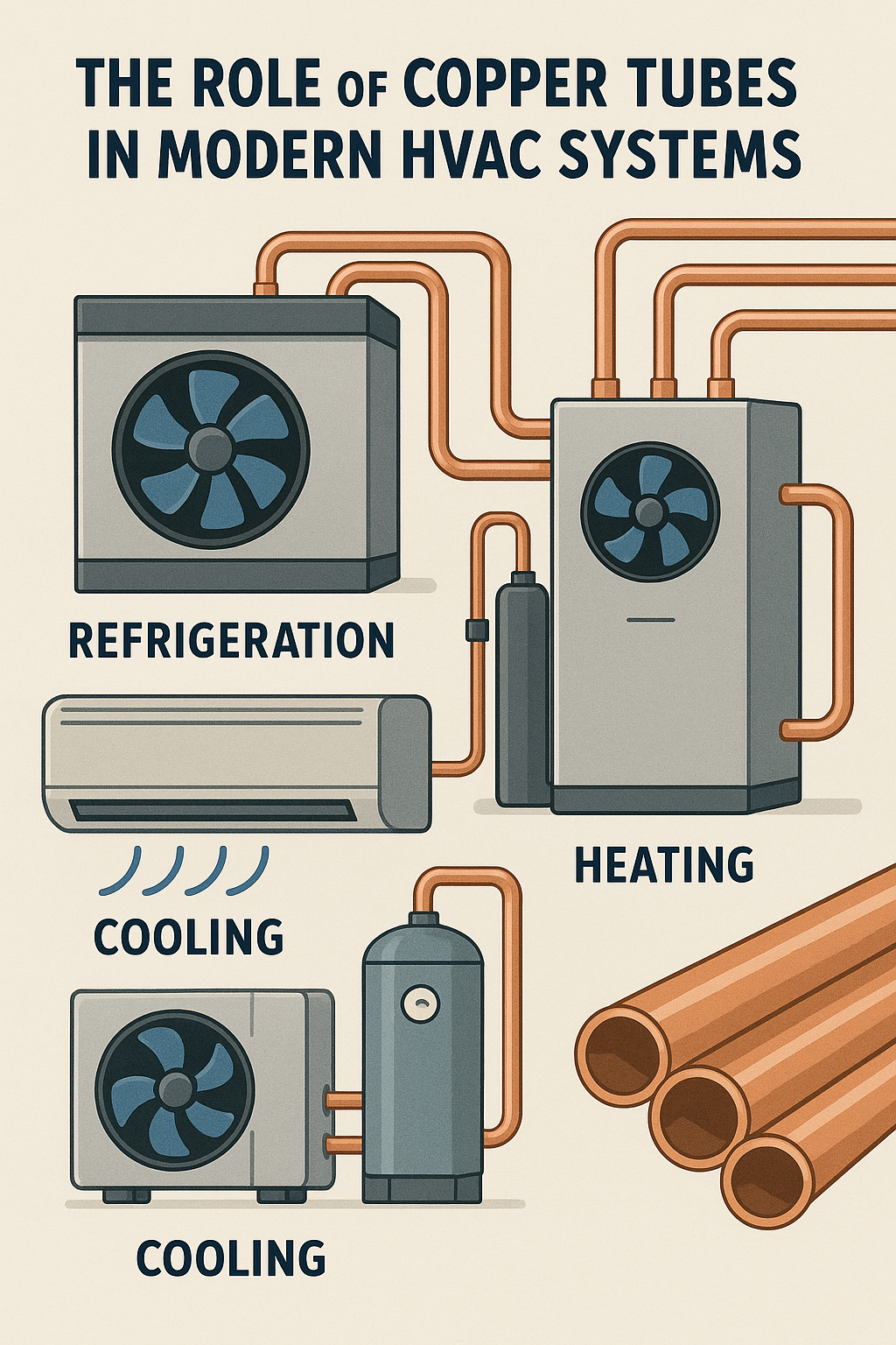 Kupferrohre gelten seit langem als kritische Komponente in HVAC-Systemen, insbesondere in den Bereichen Kühlung , Kühlung , und Heizung . Ihre Rolle bei der effizienten Wärmeübertragung, Flexibilität und Koderrosionsbeständigkeit macht sie zu einer optimalen Wahl für eine Vielzahl von HVAC-Anwendungen. Ob in Klimaanlagen, Wärmepumpen, Kühlanlagen oder Fernwärmenetzen – Kupferrohre bieten eine beispiellose Leistung.