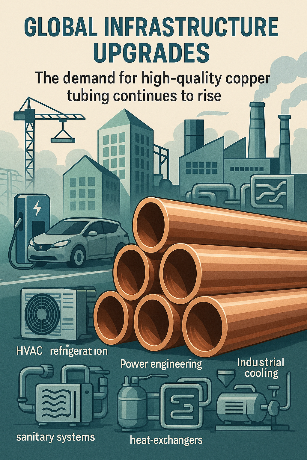Da weltweit die Infrastruktur umfassend modernisiert wird – vom Austausch von HVAC-Systemen bis hin zu energieeffizientem Gebäudebau, der Einführung von Wärmepumpen, industrieller Kühlung und der beschleunigten Elektrifizierung des Transportwesens – steigt die Nachfrage nach hochwertigen Kupferrohren weiter. In der Heizungs-, Lüftungs-, Kälte- und Energietechnik sowie in Wärmetauschern und Sanitärsystemen zählen Kupferrohre aufgrund ihrer hervorragenden Eigenschaften nach wie vor zu den vertrauenswürdigsten Materialien Wärmeleitfähigkeit , Korrosionsbeständigkeit , Formbarkeit , und 100 % Recyclingfähigkeit .